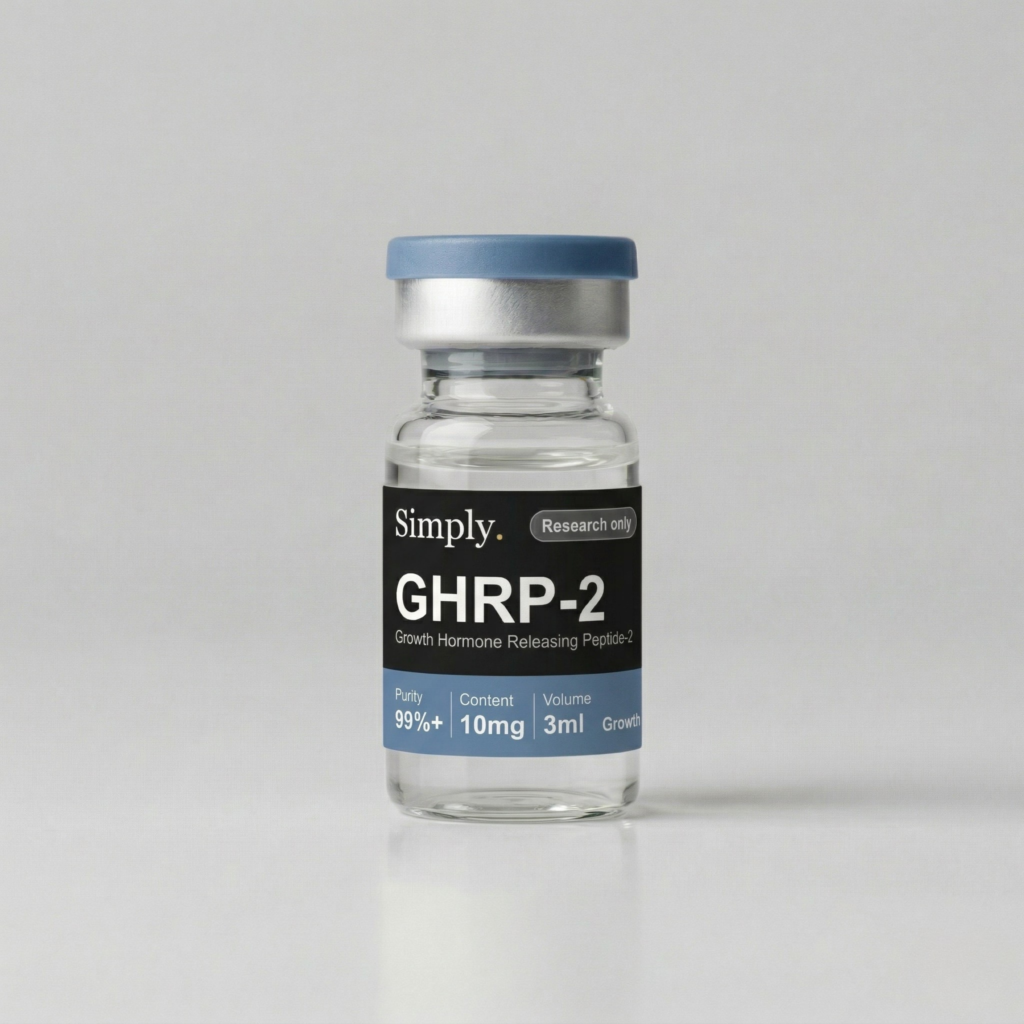 GHRP-2, or Growth Hormone Releasing Peptide 2, is a synthetic hexapeptide that acts as a ghrelin receptor agonist to stimulate growth hormone secretion. It is one of the earliest and most studied growth hormone secretagogues, with extensive published research on its effects on GH pulsatility, appetite signaling, and metabolic function. Each vial contains 10mg of lyophilized GHRP-2 at 99%+ purity, verified by third party testing. Certificate of Analysis available for download above. Store lyophilized at -20°C for up to 24 months. Once reconstituted with bacteriostatic water, store at 2 to 8°C and use within 30 days.